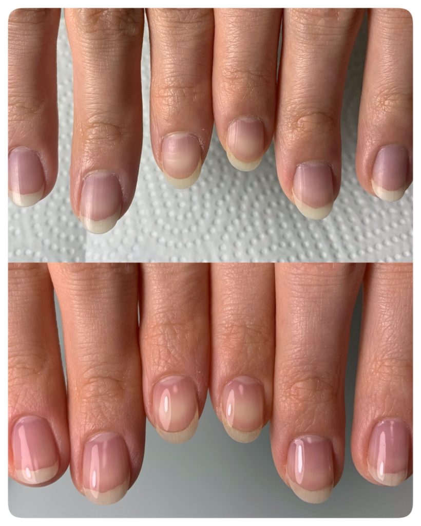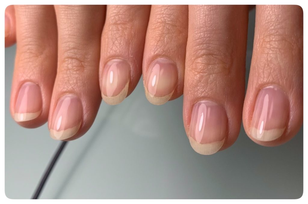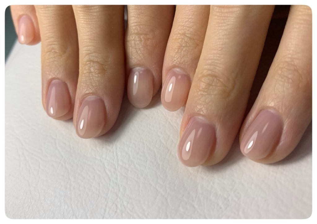 ケアをして形を整え、ベースジェルを塗った状態がコチラ!