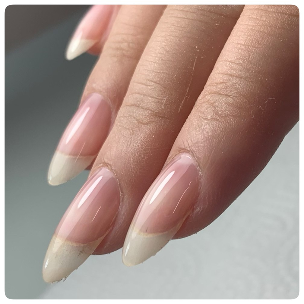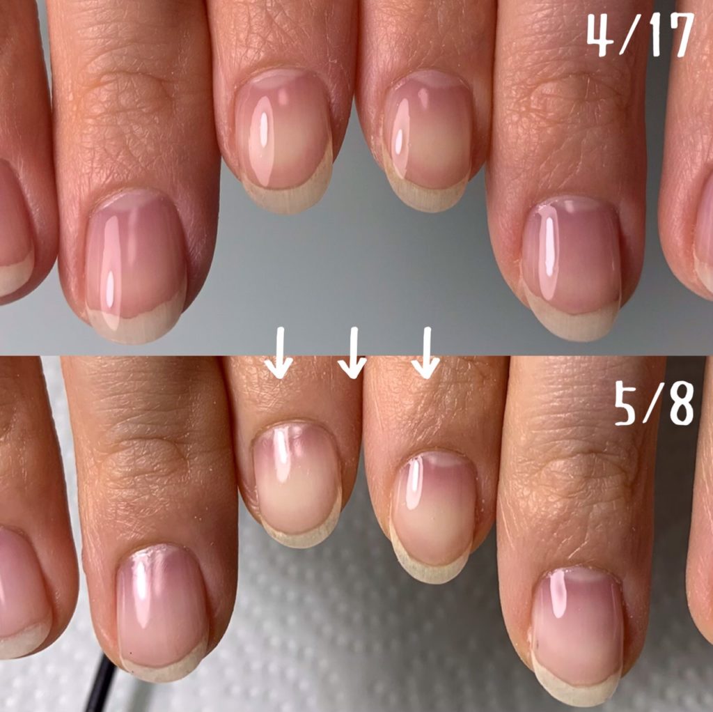 こんにちは!名古屋市東区高岳自爪育成サロンmegnail鈴木です★先日ご来店のお客様、事情がありジェルネイルをオフすることになったのですが…久しぶりに見た自爪に私もお客様もびっくり!!!ピンクの部分が